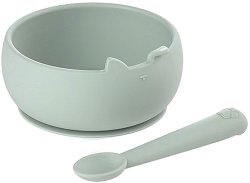 Детски силиконов комплект за хранене Jane - Купичка и лъжица, 4+ м - продукт