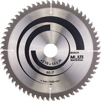 Циркулярният диск на Bosch от серията Multi Material е предназначен за рязане на алуминий, пластмаса и ПДЧ. Снабден е с висококачествени прецизно наточени карбидни зъби, които осигуряват бързо и лесно рязане. Основният диск е изработен от SK5 втвърдена стомана със стабилност на формата (> 40 HRC) и осигурява точност при работа.