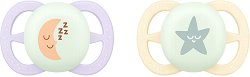 Флуоресцентни ортодонтични залъгалки Philips Avent Nighttime 2 броя, с кутия за съхранение, от серията Ultra Start, 0-2 м |
