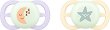 Флуоресцентни ортодонтични залъгалки Philips Avent Nighttime Plant-Based 2 броя, с кутия за съхранение, от серията Ultra Start, 0-2 м |