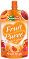 Забавната плодова закуска с ябълки и праскови, обогатена с витамин C на "Novofruct" е с 95% плодово съдържание. Тя е лесно смилаема и идеална за десерт или като междинно хранене за деца над 3-годишна възраст. Практичната ѝ опаковка я прави подходяща за консумация навън или по време на пътуване. Пластмасовата капачка се отвърта и детето спокойно може да изсмуче плодовата закуска, която е под формата на пюре.