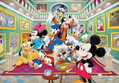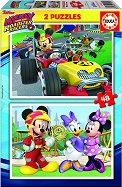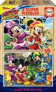 В кутията ще откриете 2 пъзела с изображения на популярни герои от детската анимация "Мики Маус". Всеки от тях се състои от по 16 дървени елементи с гланцово покритие.