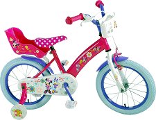 Детско колело за любителките на "Мини Маус", подходящо за деца на възраст от 4 до 6 години и ръст от 104 до 110 cm. Помощните колела могат да се премахнат веднага, когато детето може да кара без тях. Колелото отговаря на нуждите и безопасността на детето ви - разполага с подвижни помощни колела, здрави калници, предпазител за верига, за да се избегнат наранявания, регулируема седалка, кош за играчки разположен на кормилото и втора седалка за любимата кукла на вашето мъниче. ... |