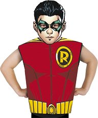 Всяко дете има любим герой, на който иска да подражава. Ако любимецът на вашия малчуган е Робин - помощникът на Батман, то може да го изненадате с костюм от "Rubies". Той се състои от картонена маска и блузка без ръкави, която е универсален размер. Комплектът е подходящ за деца до 6-годишна възраст с височина между 116 - 120 cm.