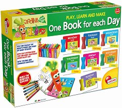Комплектът е част от серията "Carotina Super Bip", където ще откриете още образователни игри и играчки. ... Комплектът "Създай сам - Книга за всеки ден" на "Lisciani" се състои от магическа химикалка - Морков, която свети и говори на английски език, 48 картонени страници за създаване на книга, 7 клипса за захващане на страниците, 6 восъчни пастела, 2 листа стикери, инструкции и картонена поставка за книжки.