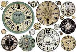 Декупажната оризова хартия от "Stamperia" изобразява различни часовници. С нея може да превърнете предметите за декориране в истинско произведение на изкуството, направете приказна кутия за бижута или стилна текстилна чанта.