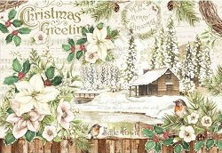 Декупажната оризова хартия от "Stamperia" изобразява коледен пейзаж и цветя. С нея може да превърнете предметите за декориране в истинско произведение на изкуството, направете приказна кутия за бижута или стилна текстилна чанта.
