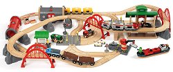 Комплектът е съвместим с всички локомотиви, вагончета, аксесоари и релси на Brio. Играчката е изработена от висококачествени материали, сертифицирани за безопасност и игра за малки деца. ... |