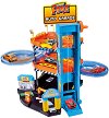 От "Bburago" са направили страхотен гараж на три нива. Има рампа, по която може да се спускат металните умалени колички "Mercedes AMG GT" и "Audi A1", след което малчугана може отново да ги качи горе, използвайки асансьора. Играчката разполага с "автомивка" в която могат да се почистват автомобилите, "бензинова колонка" и "диностенд", който се намира в задната страна на паркинга, там може да се измерва мощността на двигателя и гумите.