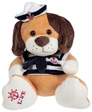 Кученцето е изработено от плюш и полиестер и е с височина 28 cm. То има моряшка дрешка и шапка, а на крачето му е избродиран надпис "Love", което го прави чудесно за подарък на дете или любим човек.