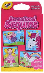За малките госпожици, които обичат да рисуват феи и еднорози и още повече блясъка им, английската компания "Galt" е създала творчески комплекти за "рисуване" с пайети! С комплекта „Създай сама картина с пайети - Феи и еднорози“ малките принцеси ще могат да направят сами 2 картини на феи и 2 картини на еднорози, като ги обсипват с пайети. Като истинска фея с вълшебната пръчица ще можете да взимате бляскавите частички една по една и да ги поставяте на правилното им място върху самозалепващата повърхност на картината.