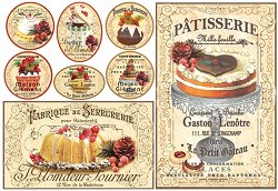 Декупажната оризова хартия на "Stamperia" изобразява картички с различни торти. С хартията може да превърнете предметите за декориране в истинско произведение на изкуството. Направете нежна кутия за бижута или стилна кутия за чай.