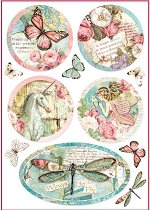 Декупажната хартия от "Stamperia" изобразява цветя, пеперуди, еднорог и водно конче. С нея можете да превърнете предметите за декориране в истинско произведение на изкуството,като добавите флорални мотиви. Направете приказна кутия за бижута или стилна текстилна чанта.