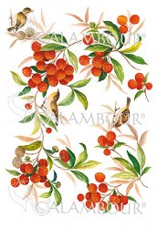 Декупажната хартия от "Stamperia" изобразява красив божур и клонки с червени и черни боровинки. С нея можете да превърнете предметите за декориране в истинско произведение на изкуството,като добавите флорални мотиви. Направете приказна кутия за бижута или стилна текстилна чанта.
