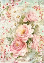 Декупажната оризова хартия от "Stamperia" изобразява красив букет от рози и маргаритки. С нея може да превърнете предметите за декориране в истинско произведение на изкуството, като им добавите флорални мотиви. Направете приказна кутия за бижута или стилна текстилна чанта.