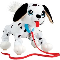 Меко плюшено кученце, което можете не само да гушкате, но и да разхождате досущ като истинско. Използвайте каишката, за да го разхождате в парка, на тротоара или вкъщи, докато кученцето подскача като живо след вас. Играчката разполага с малко звънче и не са нужни батерии.