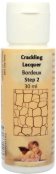 Двуфазният лак "Стъпка 2" от "Daily Art" е предназначен за създаване на напукващ и състаряващ ефект при декориране на различни предмети и направата на декупаж. Той се нанася върху основата на двуфазен лак "Стъпка 1". При изсъхване се разпуква, създавайки ефектни пукнатини. Те могат да се запълнят с антична паста, пигменти на прах или битум, с който може да подчертаете стария вид на предметите. След като приключите с декорацията трябва да лакирате, за да предпазите от надраскване или полепване на прах. Лакът се предлага в разфасовка от 30 ml, в различни цветове. ... |