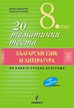 Съдържа 20 тренировъчни теста, които проверяват знанията на учениците както по български език, така и по литература. Тестовете следват тематичните разпределения на учебния материал и са по няколко варианта за всеки месец от учебната година. Съдържат въпроси с избираем и въпроси със свободен отговор, както и текстове, които допълват знанията по съответната тема. Това дава възможност на учениците за постъпателна подготовка ... |