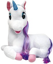 Близки съвпадения: играчка, играчката Красивият еднорог Луна бързо ще се превърне в най-добрата приятелка на малката принцеса. Вълшебното създание има светещ рог, пее песен и разказва приказка за еднорози на български език. Докато говори, устата му се мърда и мига с красивите си клепачи, и така Луна прилича съвсем на истинско животинче. Играчката е изработена от текстил, приблизителната ѝ височина е 36 cm и работи с 3 броя батерии тип АА 1.5V, които са включени в комплекта с демонстрационна цел. Препоръчително е да бъдат сменени с нови преди детето да започне да играе. ... | |||||||