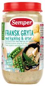 Пюретата на "Semper" за бебета над 12 месеца се състоят от по-големи парченца и се доближават до храната за възрастни. С тях детето Ви ще се научи да дъвче, за да може постепенно да премине към по-твърди храни. Пюрето от френска яхния с пилешко месо и билки е подходящо за бебета над 12 месеца и доставя важни аминокиселини, витамини и минерали, които допринасят за развитието на мозъка, костите и клетките в организма, а храната в него е крехка, лесно смилаема и в подходящо за възрастта количество. Приемът на енергия, желязо, калций, минерали и витамини на децата в тази възраст е от изключително значение. ... | |||||||