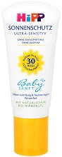 Близки съвпадения: 30 Крем на "HiPP" със слънцезащитен фактор SPF 30, който ефективно защитава деликатната кожа на вашето бебче, още от първите му дни, от вредното влияние на UVA и UVB лъчите. В състава му е вложено био масло от бадем, което подхранва и овлажнява кожата, предпазвайки я от изсушаване, а пантенолът има успокояващи свойства. Кремът попива бързо и не оставя бял филм или неприятни следи. Разработен е специално за чувствителната бебешка кожа, за да намали до минимум рисковете от алергии и раздразнения, поради което не съдържа етерични масла или парфюми. Има помпичка-дозатор, която позволява хигиеничното и икономично ... | |||||||