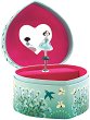 Музикалната кутия за бижута на "Djeco" е създадена да съхранява детските бижута и аксесоари. Тя разполага с едно основно отделение за тях, което "се крие" под капака. Кутията разполага с огледалце, разположено от вътрешната страна на капака. Когато детето отвори кутията, за да избере своя аксесоар, ще вижда фигурка на балерина, която ще започне да се върти пред огледалото под звуците на нежна мелодия. ... | |||||||