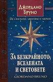 Изданието е двуезично на италиански език и на български език. ... През 1584 г. Джордано Бруно публикува в Лондон своя трети диалог на италиански език: "За безкрайното, вселената и световете". Съчинението e своеобразно продължение и развитие на собствената философска система на Бруно, чието начало е поставил с диалога "Пепеляната вечеря". В диалога авторът съчетава бляскавото си чувство за хумор и драматургично майсторство с излагането на ключови философски твърдения, които преобръщат цялата история на европейската мисъл.
