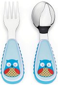 Комплектът от виличка и лъжичка е изработен специално за удобството на малките деца, така че да е подходящ при прехода към самостоятелно хранене. За да улеснят този процес, от "Skip hop" са изработили приборите с удебелени дръжки, които имат гумирани краища със силно изразена текстура. Това прави виличката и лъжичката удобни за използване от малки ръце.