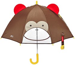 Детският чадър "Маймунка" ще пази детето Ви не само от водата, която се сипе от небето докато вали, но и от неприятния вятър по време на дъжд. Когато е разпънат той има куполовидна форма и е снабден с прозрачно прозорче в предната си част. Така детето, ще може да вижда всичко наоколо, като в същото време лицето му ще е защитено дори когато има по-силен вятър.