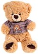 Мечето е изработено от плюш и полиестер и е с височина 35 cm. То има пуловерче на райета с нарисувано мече и надпис, което го прави чудесно за подарък на дете или любим човек.