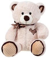 Мечето е изработено от плюш и полиестер. То има избродирано сърчице над коремчето, а освен това има аксесоар панделка, което го прави чудесно за подарък на дете или любим човек.