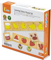 С играта от Viga Toys вашето дете ще се запознае с цветовете по един забавен начин. Тя се състои от 36 плочки и 2 зарчета. Те са изработени от дърво, оцветено в ярки цветове. Шест от плочките изобразяват бурканчета в няколко цвята - лилав, син, жълт, оранжев, зелен и червен. Останалите части представляват картинки в цветовете. Детето ще може да разгледа частите а след това да ги сортира правилно. Играта може да се играе самостоятелно или в компания до 6 играча. Тогава се включват и зарчетата. Всеки участник избира бурканче, а с помощта на зарчетата трябва да успее пръв да изтегли всичките плочки в дадения за него цвят. ...
