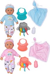 Куклите бебета Макс и Миа от Micki са близнаци и ще насърчат творческата и въображаема игра на вашето дете. С височина 33 cm и меки, меки за гушкане тела, те са идеални за прегръдки и ежедневни "бебешки" приключения. Комплектът включва 2 кукли, 2 одеяла, 2 гърненца, бебешки шишета, купички и прибори за хранене – всичко необходимо за пълноценна ролева игра. Могат да се комбинират с дрехи и аксесоари за кукли с размер 28 - 35 cm за още повече забавление. ... |