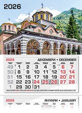 Календарът за 2026 г. е дванадесетлистов и съдържа изображения на икони, популярни български манастири и старинни църковни утвари. Съдържа: подробен православен календар; символът на вярата; 10 -те Божи заповеди; основни молитви; условия за кръщене и венчавка; официални и професионални празници; лунни фази; страница за лични бележки. Размери: в сгънато състояние: 30 x 30 cm. в разгънато състояние: 60 x 30 cm. ... |