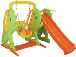 Детска пързалка с люлка и баскетболен кош Pilsan - Слонче - Детска пързалка с люлка и баскетболен кош Pilsan - Слонче