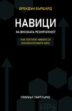Как постигат нивото си изключителните хора."Тези навици ще ви направят изключителни. Просто ги изучете и развийте. Книгата, която държите в ръце, ще ви даде дълбоко разбиране, кристална яснота и неподражаем ентусиазъм. Авторът Брендън Бършард споделя огромния си опит с вас, за да ви помогне да постигнете своите стойностни и впечатляващо високи резултати. Брендън е един от най-добрите мотиватори и специалисти по маркетинг в света." Лари Кинг "Тези шест навика отразяват това, което хората на високите резултати постоянно правят - от цел на цел, от проект на проект, от екип на екип, от личност на личност. ... |