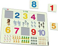 Детският образователен пъзел "Числата от 1 до 10" на "Larsen" съдържа 10 картонени елемента, които ще помогнат на децата да научат реда на цифрите от 1 до 10, докато броят животните под всяка цифричка. Пъзелът има твърдата, рамкирана, картонена подложка. ... |