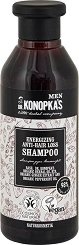 Натуралният шампоан от Dr. Konopka's укрепва космените фоликули и помага за намаляване на косопада. Формулата, обогатена с натурални масла, подхранва и хидратира косата. При редовна употреба, тя става силна, еластична и блестяща. В състава e вложено масло от лавандула, което помага за успокояване на раздразнения скалп и подсилва корените на косата. То възстановява блясъка и силата ѝ, намалявайки цъфтенето и накъсването на краищата. Включеното масло от чаено дърво и бадем възстановяват увредените космени фоликули и намаляват косопада. Формулата съдържа още масла от слънчоглед, маслина, арган, ... |