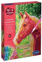 Комплектът е част от серията Art and Creations, където ще откриете още творчески комплекти по темата. ... Направи красива картина на конче с помощта на творческия комплект от Sentosphere. Той се състои от предварително разграфено платно, множество цветни камъчета, поставка за разделяне на камъчетата, уред за взема на камъчета и восък, с който залепват камъчетата. Горната част на платното е покрита с лепяща основа. За да поставите камъчетата трябва да вземете специалния уред и да използвате гел листа. Когато натиснете върха на уреда към листа, той ще стане достатъчно лепкав за да вземете мънисто и да го поставите на ... |
