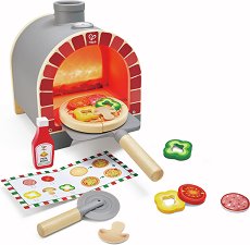 Потопете се в кулинарен свят на въображение с детската фурна за пица от HaPe с реалистични светлини и звуци. Фурната пресъздава ефект на горящи дърва и звук на печене, което прави играта напълно завладяваща. Децата могат да "приготвят" собствена пица, използвайки дървена кора, филцов сос и разнообразие от вкусни гарнитури като домат, зелена чушка и пеперони – идеално за стимулиране на креативността и ролевата игра. С лопатката за пица малчуганите поставят пицата във фурната и наблюдават как се "готви" с автентични звукови ефекти. След това могат да я сервират със сос и да я нарежат с реалистичния ... |