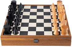 Понякога шахът се превръща в много повече от игра. Докато за едни предстоят първи стъпки в местенето на фигури и обмислянето на стратегически ходове, за други шахът вече е страст и любимо хоби. А за трети може да е дори и начин на живот, протичащ в турнири. За почитателите на играта шах от Manopoulos предлагат луксозен комплект, който ще бъде подходящ подарък, независимо от повода. Той се състои от кутия с основа за игра на шах и 32 дървени фигури в светло кафяв и черен цвят. Кутията е изработена от висококачествен дървен материал и еко кожа, и е с размери 40 x 40 cm. От вътрешната страна разполага с място за ... |