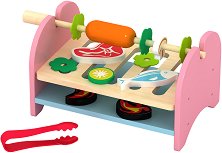 Детският комплект от "Tooky Toy" е специално създаден за малките готвачи! Той е подходящ за малчугани над 3-годишна възраст и се състои от котлон със сменяем плот, тиган, тенджера с капак, лъжица, вилица, шпатула, щипки, 2 шишчета и фигурки за "готвене". Елементите са изработени от пластмаса и дърво, боядисано с безвредни бои на водна основа. Котлонът е лек и разполага с въртящи се бутони, часовник и закачалки за лъжицата и вилицата. А за да се превърне от котлон в барбекю, е достатъчно да обърнете плота му наобратно и да махнете часовника. Фигурките могат да се съхраняват удобно в задната част на ... |