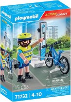 Играчката е част от серията Action Heroes, където може да намерите още интересни комплекти. ... Конструкторът от Playmobil отвежда децата в динамичния свят на градския велопатрул. В градската джунгла най-бързият начин полицаят да стигне до мястото на инцидента е с неговия електрически велосипед. За да бъде винаги готов за действие, батерията се зарежда редовно на модерната зарядна станция. Качи се на велопатрула и се впусни в градски приключения. Комплектът включва детайлно изработен електрически велосипед и реалистична зарядна колонка, които правят играта още по-автентична. Свалящите се полицейска каска и кобурът ... |