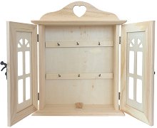 Кутията за ключове от "New Art" разполага с 6 метални кукички за закачане на ключове, 2 стъклени врати и закопчалка. Тя може да бъде част от интериорния дизайн във вашия дом или каквото още креативността ви реши. Превърнете я в уникален подарък като декорирате с различни материали - акрилни бои, брокати, камъчета, панделки, хартия за декупаж и салфетки за декупаж. Не забравяйте, какъвто и метод за декориране да изберете, е препоръчително да запечатате своето произведение на изкуството с лак. Кутията за ключове е изработена от дърво и е с размери 22 / 27 / 6 cm. ... |
