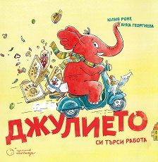 Книгата е с цветни илюстрации, които са дело на Анна Георгиева. ... Книгата ни разказва историята на слончето Джулието, на който му се налага да започне да си търси работа. Той преминава през няколко различни професии: опитва се да бере ягоди в Гърция, после отива в кол-център, след това става готвач, после пък става катерушка в детска градина, след това продавач в стъкларски магазин. И така Джулието се опитва да намери своето място. ...