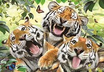 Тигрицата обикновено ражда от 2 до 4 тигърчета, като след раждането им тя започва да ги кърми. Малките се раждат слепи и тежат средно по 1 kg. Едва навършили 2 месеца, тигърчетата започват да се хранят с месо. Докато са малки те са много уязвими, но може да разчитат на защитата на майка си, която по-късно също ги учи да ловуват. За да предпази малките си от опасност, тигрицата периодично търси нови места, на които да се установят и след като намери такова, ги пренася до там с устата си. Така, тигрите се сдобиват с множество "скривалища", които при нужда да използват. Прецизно изработената фигурка на майката- ... |