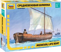 Мащабно умален сглобяем модел от пластмаса на средновековна спасителна лодка. Брой части: 29. Дължина: 8 cm. Моделът е с мащаб 1:72. За да може да сглобите и залепите този макет, ви е необходимо лепило. Елементите на модела са направени от едноцветна пластмаса. Моделът може да се оцвети с боички. Препоръчани боички от производителя за оцветяване на модела - "Humbrol": 34 White 33 Black 110 Natural wood 98 Chocolate ... |