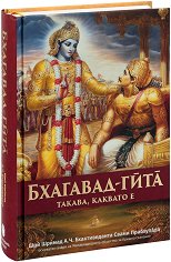 Бхагавад гита такава, каквато е е извор на мъдрост, надежда, покой и радост. От най-дълбока древност тя е смятана за свещена книга, тъй като излага знание за абсолюта. В нея се обясняват вечните теми за Бога, душата, прераждането, материалната природа, продължителността на съществуване на вселената и карма (дейностите на живите същества). Изданието съдържа оригиналния санскритски текст с транслитерация на кирилица, буквален и художествен превод и обстойни коментари от Шри Шримад А. Ч. Бхактиведанта Свами Прабхупада."Когато ме преследват съмнения, когато ме заплашва неуспех и не виждам нито лъч надежда, аз се ...