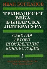 Събития, автори, произведения, библиография. ... Двутомният труд "Тринадесет века българска литература" дава многостранна археографска и библиографска информация. Като използва метода на хронологическата съпоставимост, авторът проследява историко-фактологическото и идейно-тематичното богатство на нашата литература в събития, дати, характеристики на автори и на произведения в процеса на многовековното и развитие. С особена практическа стойност са регистрите на имена, книжовни паметници, анотирани произведения и периодични издания. Първият том - "Тринадесет века българска литература - том 1", включва ... |