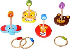 Ако търсите интересно забавление за вашето дете подходящо за двора или апартамента, то комплектът за игра с рингове от Tooky Toy е точно за вас. Той е изработен от висококачествен дървен материал и боядисан с безвредни бои. Комплектът се състои от 4 дървени мишени с изобразени животни и 4 ринга за хвърляне. Играта е подходяща за деца над 3-годишна възраст и в нея могат да участват до 4-ма играчи. Целта на играта е ринговете да се хвърлят и да се уцели някое от колчетата. Всяко от тях носи различен брой точки. Победител е този участник, който събере най-голям брой точки. ... |